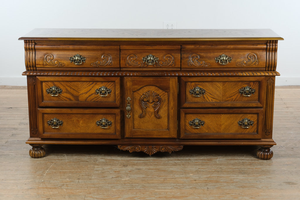Expertly crafted by Wynwood Furniture, this dresser features solid oak construction with a hand-rubbed finish that highlights the natural beauty of the wood. The detailed carvings and antique-style metal hardware reflect meticulous craftsmanship and thoughtful design, ensuring both durability and elegance.
