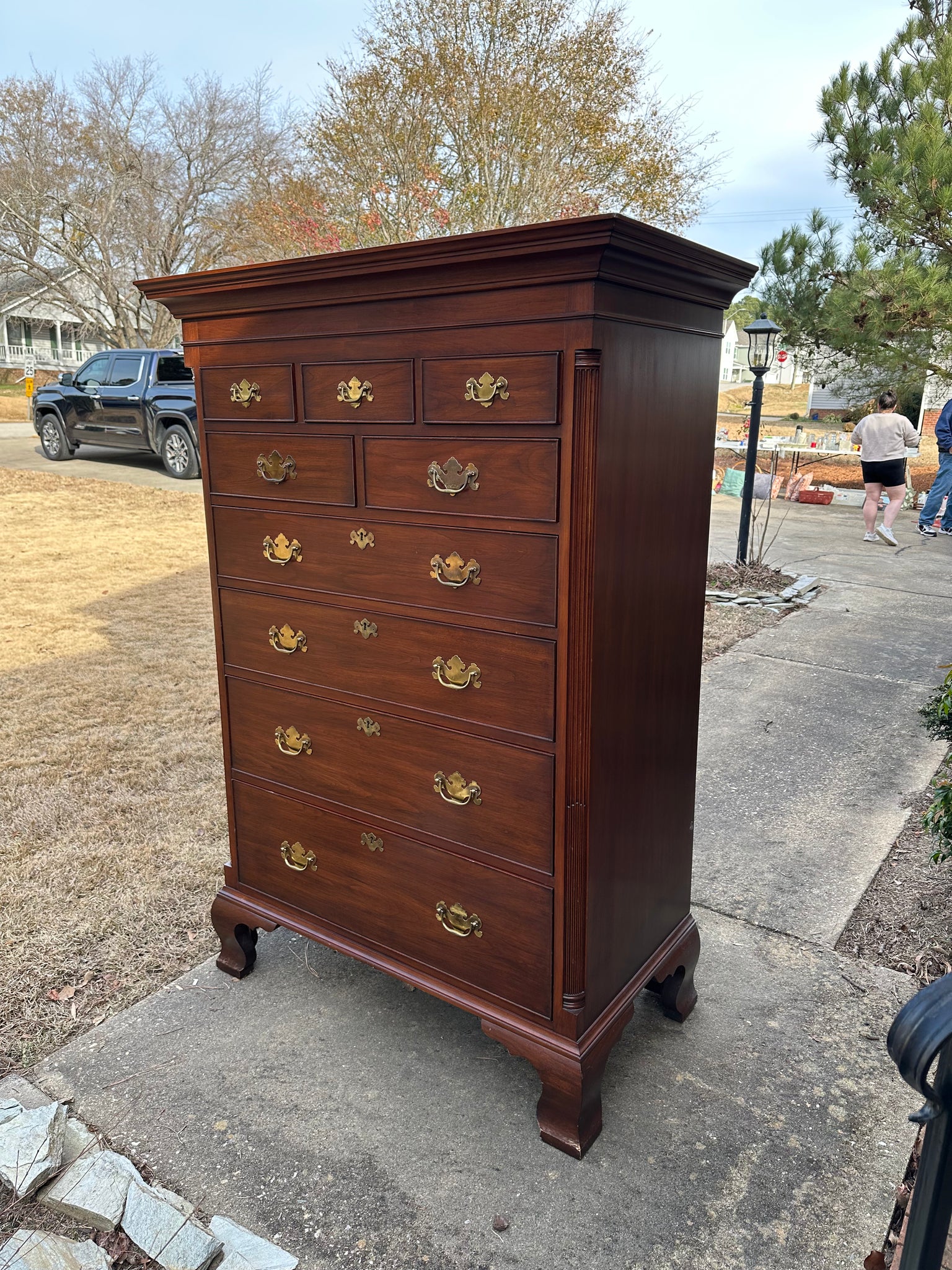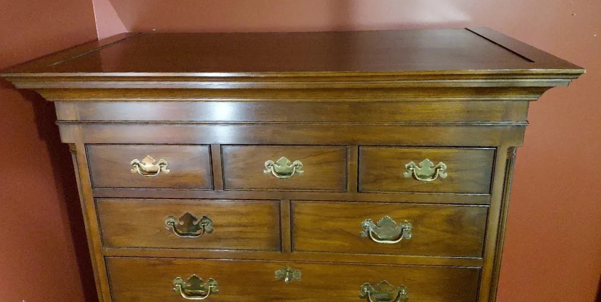 A rare and exceptional example of American fine furniture, this Henkel Harris New Market chest embodies heirloom-level craftsmanship and timeless design. Substantial in scale yet beautifully balanced, the chest showcases the rich warmth of solid cherry, refined proportions, and a classic multi-drawer configuration that reflects the brandâs uncompromising standards.