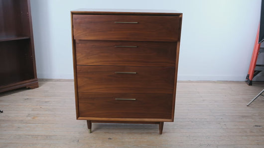 Balanced vertical storage with a compact footprint suited for bedrooms or smaller spaces. Works as a primary dresser or statement storage piece within mid century and modern interiors.