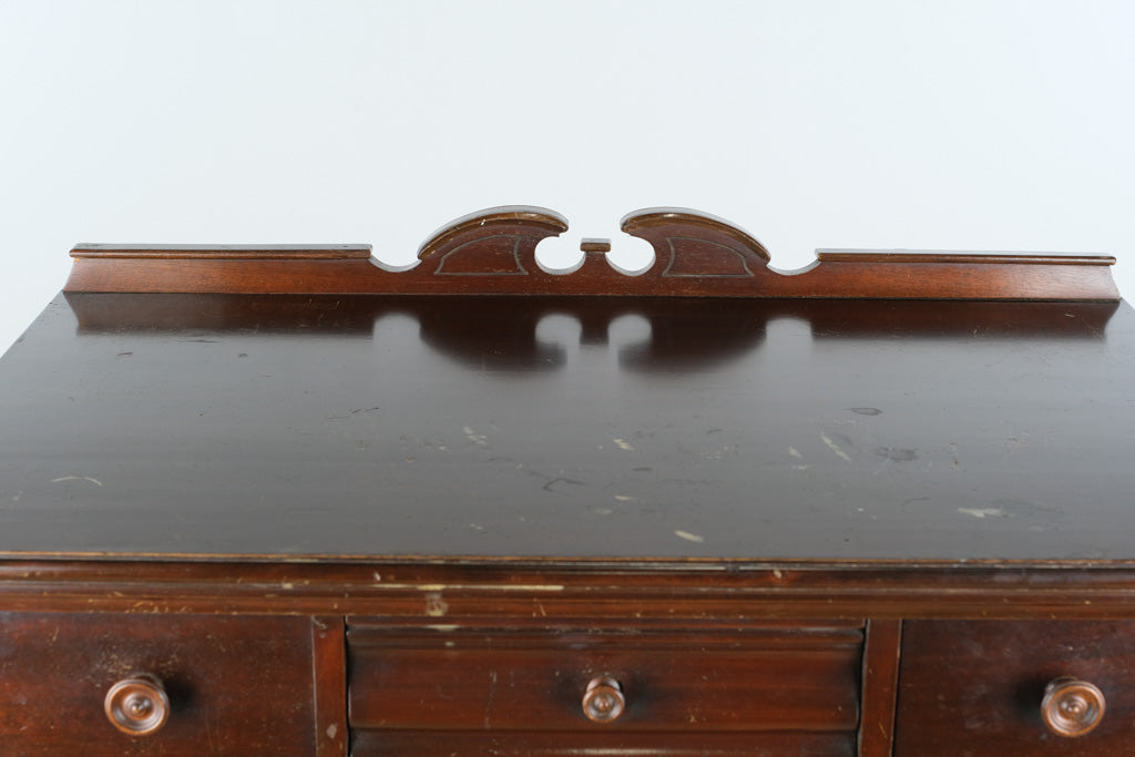 With its traditional proportions and refined details, this Tomlinson chest works beautifully as a bedroom dresser, guest room storage piece, or even a statement accent in a hallway or office. The gallery back adds visual interest and a subtle architectural element, while the warm wood finish pairs effortlessly with both classic and transitional interiors. Its honest patina lends character that simply can’t be replicated in new furniture.
