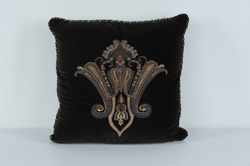 Raymond Waites 16" Embroidered Velvet Throw Pillow – Luxe Black Velvet with Metallic Threadwork