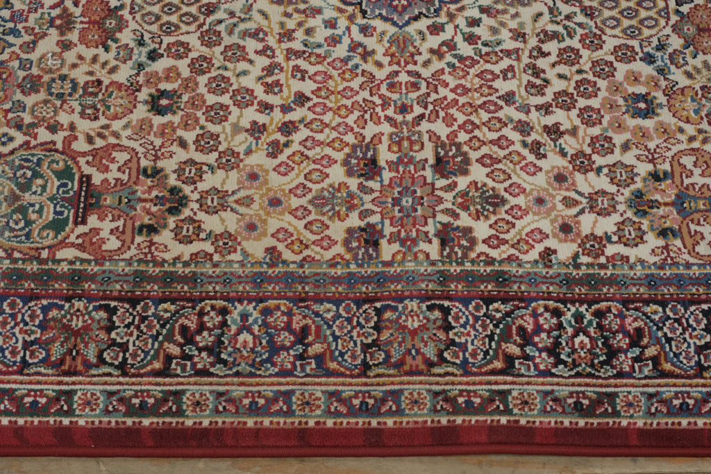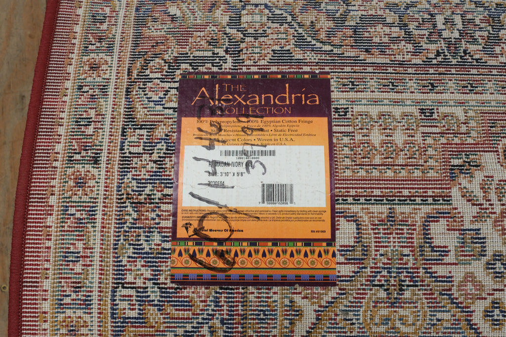 Bring timeless charm and warmth into your space with this elegant Alexandria Collection Persian Ivory Area Rug. Crafted in the USA with a luxurious blend of 100% polypropylene and Egyptian cotton fringe, this rug showcases an intricate medallion pattern framed by a deep burgundy border. Its intricate floral motifs and soft ivory tones make it a versatile accent piece for both traditional and modern interiors. Durable, colorfast, and static-free, this rug combines beauty and practicality — perfect for living rooms, studies, or entryways.