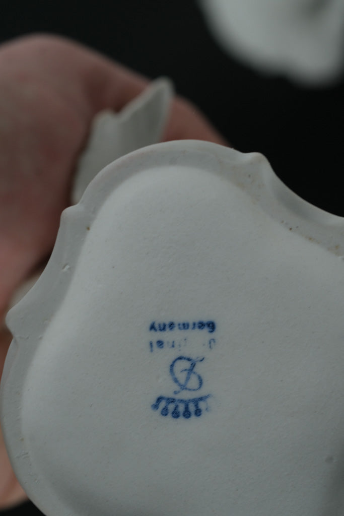 Their soft white finish and refined craftsmanship make them ideal for collectors of fine porcelain, romantic or classical décor, or anyone who appreciates timeless German artistry. Displayed together, they create a serene and captivating vignette perfect for curio cabinets, mantels, or gift-giving.