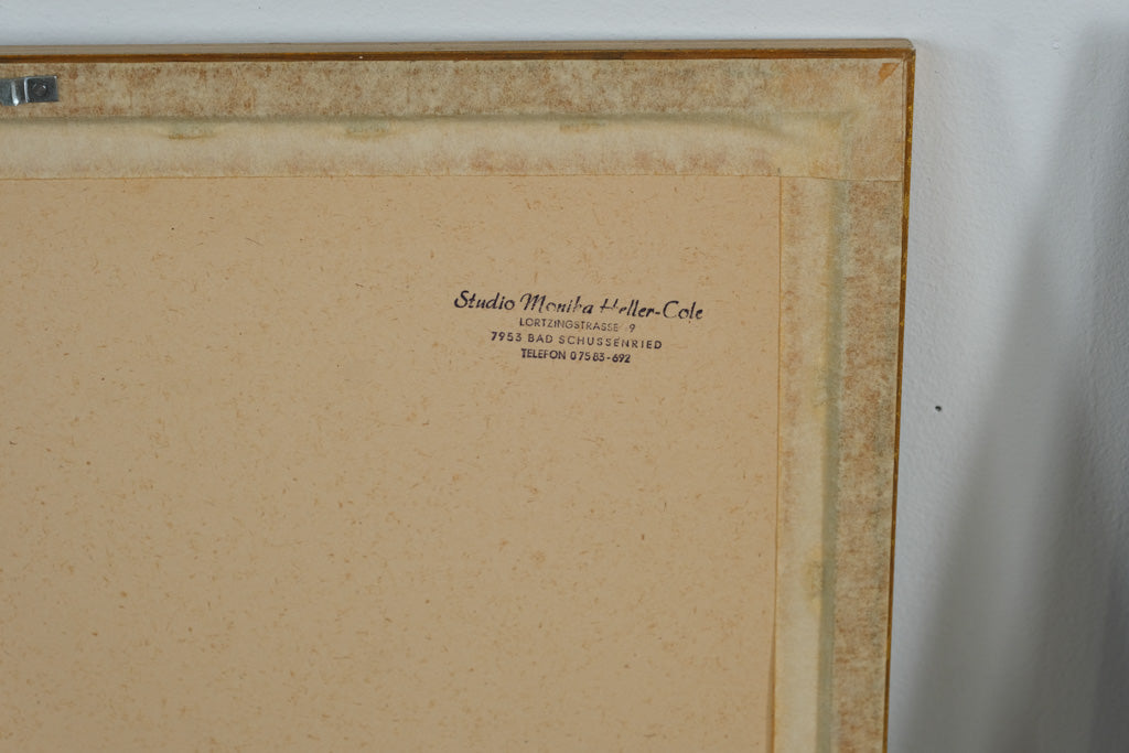 Signed in pencil and bearing the artist’s original studio stamp on the reverse, this piece was issued directly from Heller-Cole’s own atelier — a mark of authenticity and provenance collectors value. The print is elegantly presented with a warm brown mat and gold-accented frame, ready to bring European grace to any room.