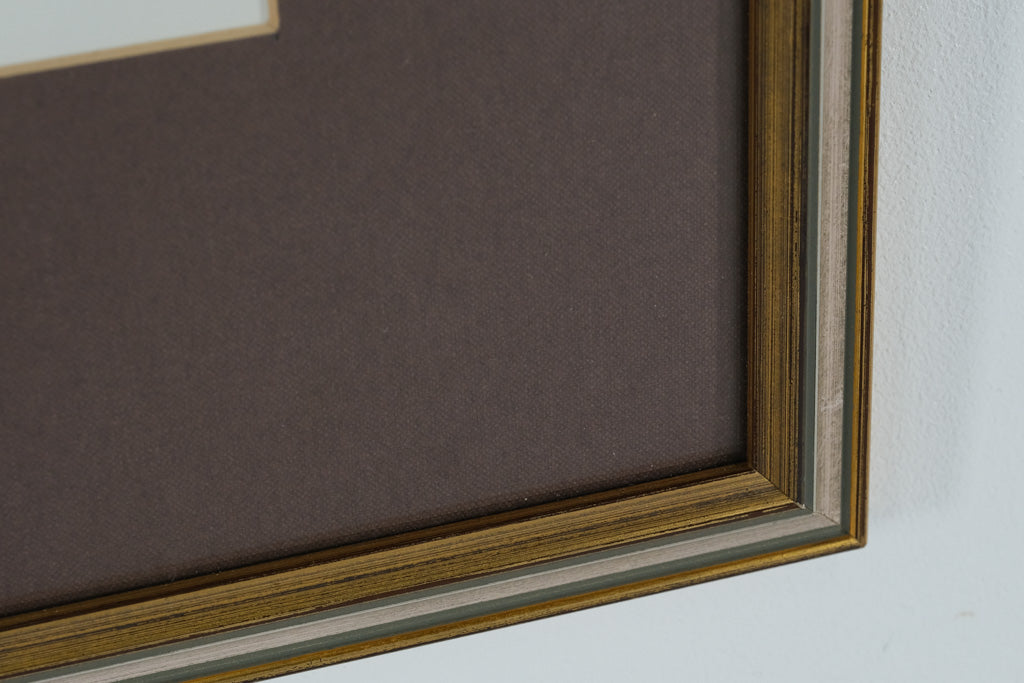 Excellent – clean artwork and mat, minor age wear on frame corners only.