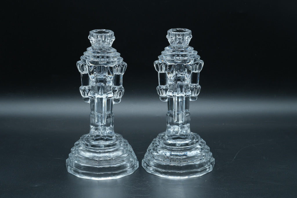 Elegant Princess House “Holiday Treasures” nutcracker candlestick holders, crafted from 24% lead crystal and designed as a matching pair.