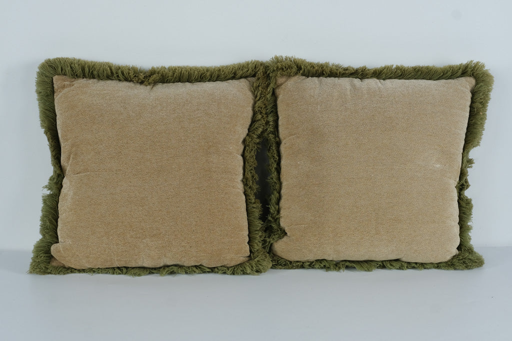 These pillows are clean, well-made, and ready for immediate use. The textured tapestry fabric adds depth and interest, while the soft green fringe brings a relaxed, inviting finish. A lovely blend of comfort, quality, and personality.