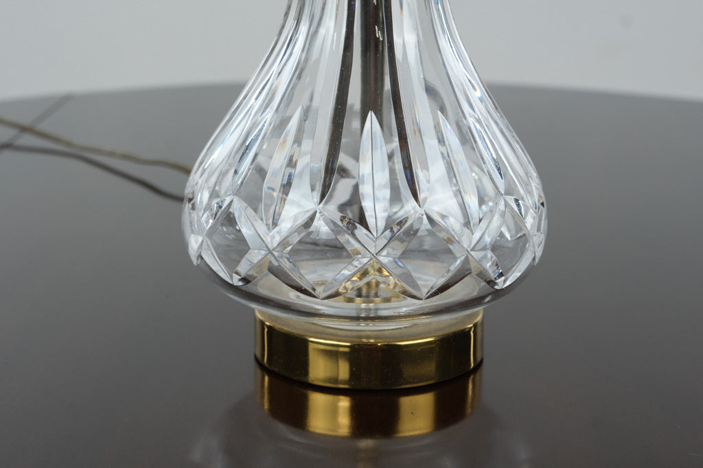 An elegant and timeless Waterford crystal table lamp, showcasing the brand’s renowned craftsmanship and clarity. This lamp features a beautifully cut crystal base with classic faceted detailing that catches and reflects light from every angle. Finished with warm brass accents and paired with a crisp white tapered shade, it brings refined sophistication to any living room, bedroom, or study.