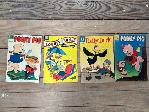 • Lot of 4 Vintage Dell Looney Tunes Comics — Porky Pig, Daffy Duck & Looney Tunes (1950s–1960s) | Classic Warner Bros. Characters