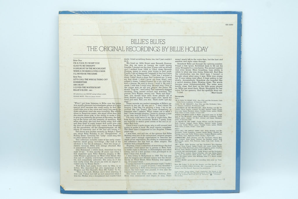 Billie’s Blues features original recordings by Billie Holiday, presenting her unmistakable phrasing, emotional depth, and jazz-blues sensibility that reshaped vocal music. Tracks such as Billie’s Blues, Summertime, and I’m a Fool to Want You highlight her ability to convey profound feeling with subtlety and restraint.