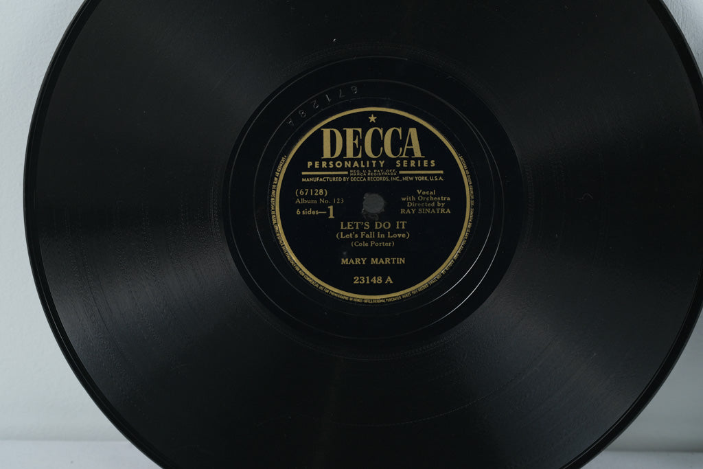 Step back into the golden era of American music with this original Decca 78 RPM album set, Mary Martin in an Album of Cole Porter Songs. Issued as Decca Album No. 123 in the Personality Series, this vintage collection features Mary Martin’s celebrated interpretations of Cole Porter’s songs, including her iconic performance of My Heart Belongs to Daddy.