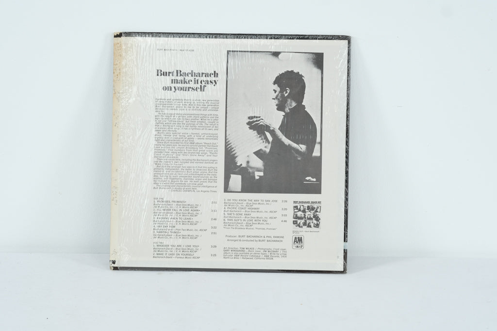 Step back into the golden era of sophisticated pop with Burt Bacharach’s Make It Easy on Yourself, released in 1969 on A&M Records. A master composer and arranger, Bacharach shaped the sound of the late ‘60s and early ‘70s with unforgettable melodies and lush orchestrations. This album captures his genius at full force, featuring both vocal and instrumental renditions of his most beloved songs.
