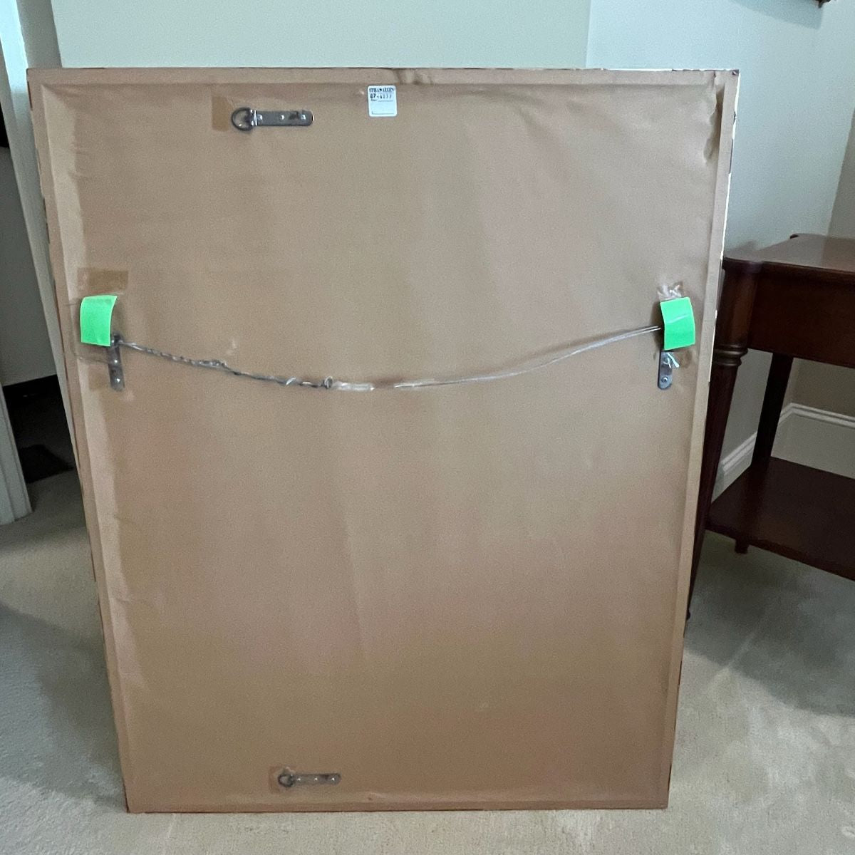 - Materials: Wood frame with applied composite ornamentation and mirrored glass panels