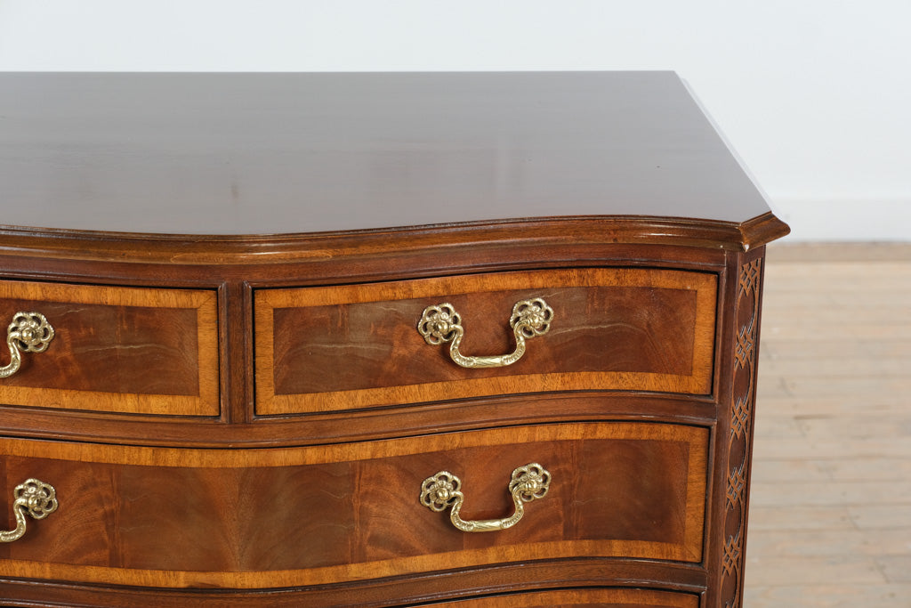 Elegant serpentine front with flowing drawer lines