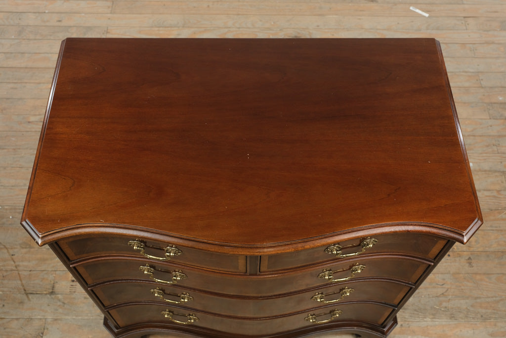 Gracefully scaled and beautifully executed, this Hickory Furniture piece from the distinguished American Masterpiece Collection embodies heirloom craftsmanship in a versatile, accent-friendly form. With its elegant serpentine front, banded drawer borders, and rich mahogany tones, this oversized nightstand offers the presence of a bachelor’s chest—just slightly more compact—making it an exceptional addition to both traditional and transitional interiors.