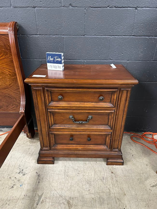 • One nightstand is missing the bail pull and currently has two round pulls in its place