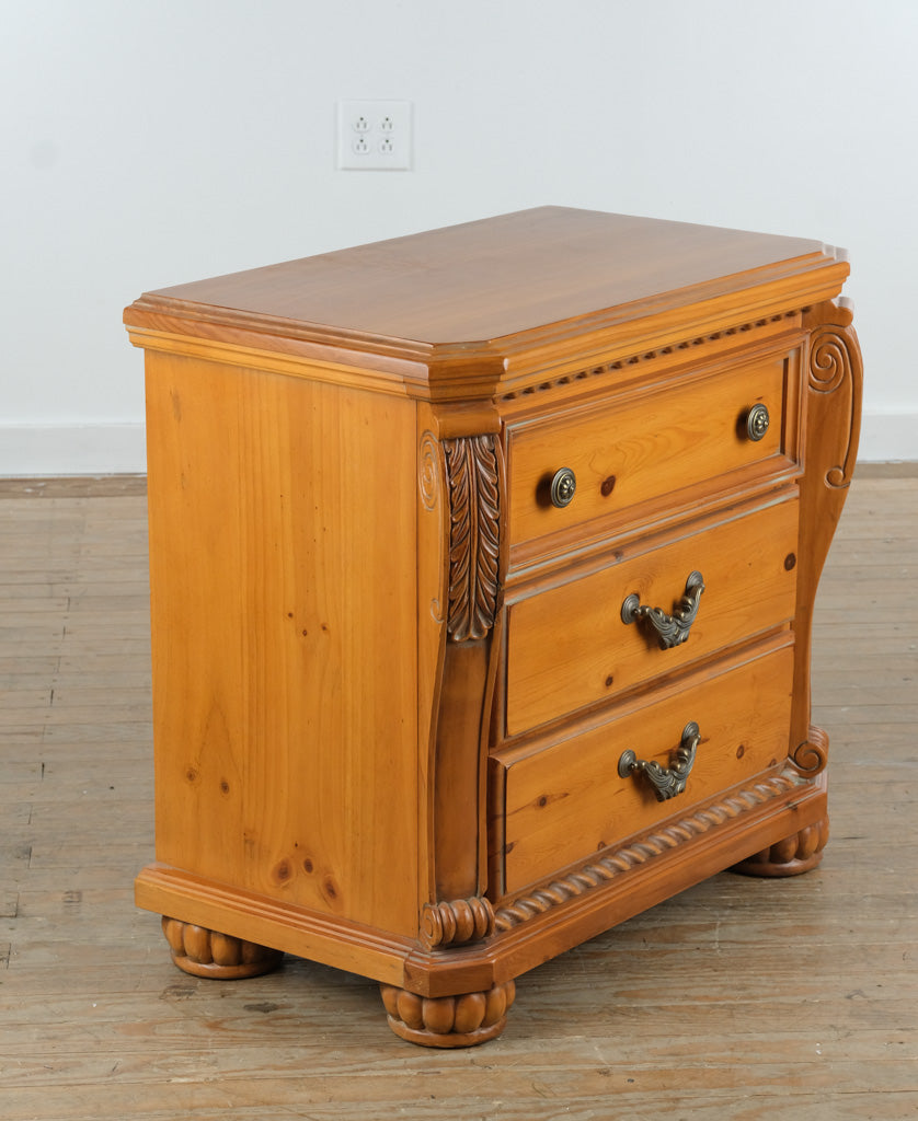 Oversized Pine Nightstand with Carved Details
