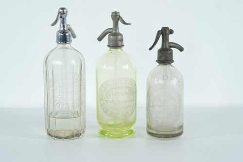 Set of 3 Antique European Etched Glass Seltzer Bottles – Geneva & Budapest