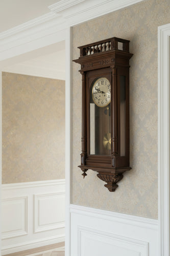 Antique German Vienna-Regulator Style Wall Clock – Biano Genève Dial, Carved Walnut Case
