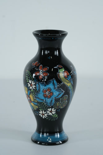 Royal Delft (Koninklijke Porceleyne Fles) Black Hand-Painted Vase with Colorful Floral & Bird Motif