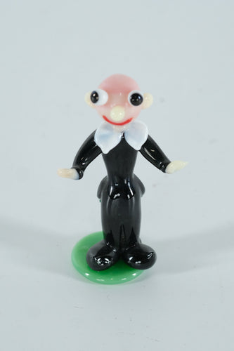Hand-Blown Art Glass Figurine – Black-Suited Character on Green Base (Miniature Collectible)