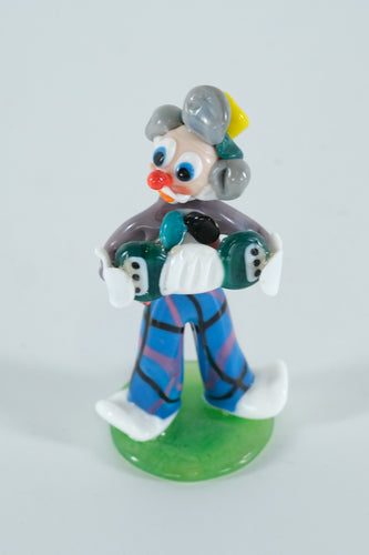 Hand-Blown Art Glass Clown Figurine with Accordion – Colorful Collectible Circus Character