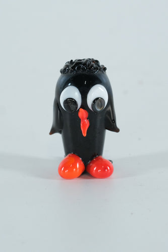 Miniature Hand-Blown Art Glass Penguin Figurine – Black & Orange Collectible with Whimsical Expression