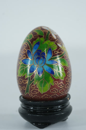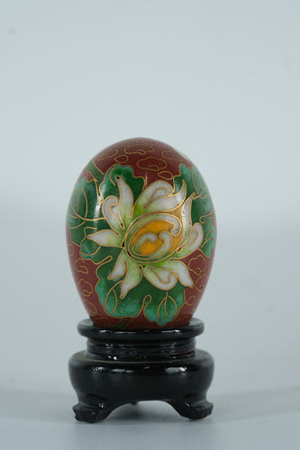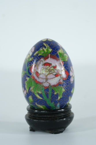 Cloisonné Egg with Peony Blossom Design – Hand-Enameled Floral Art on Stand (2" x 3")