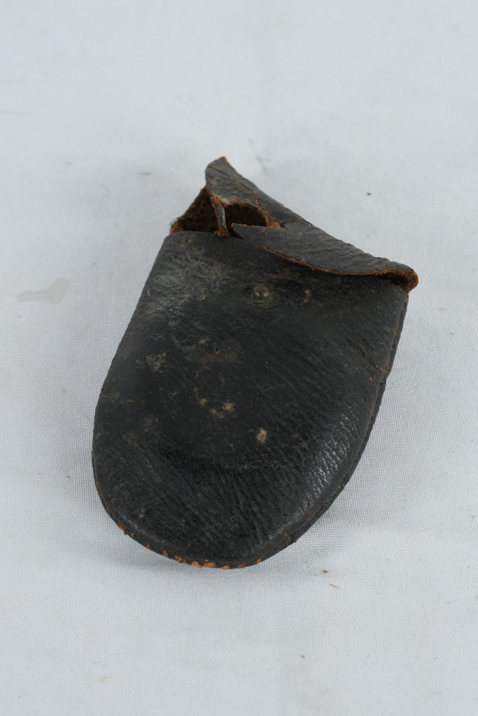 Good antique condition. Some tarnish and oxidation to metal surfaces, consistent with age. Glass face intact, dial legible, pointer moves freely. Leather case shows wear and cracking but remains intact. Not tested for functionality.