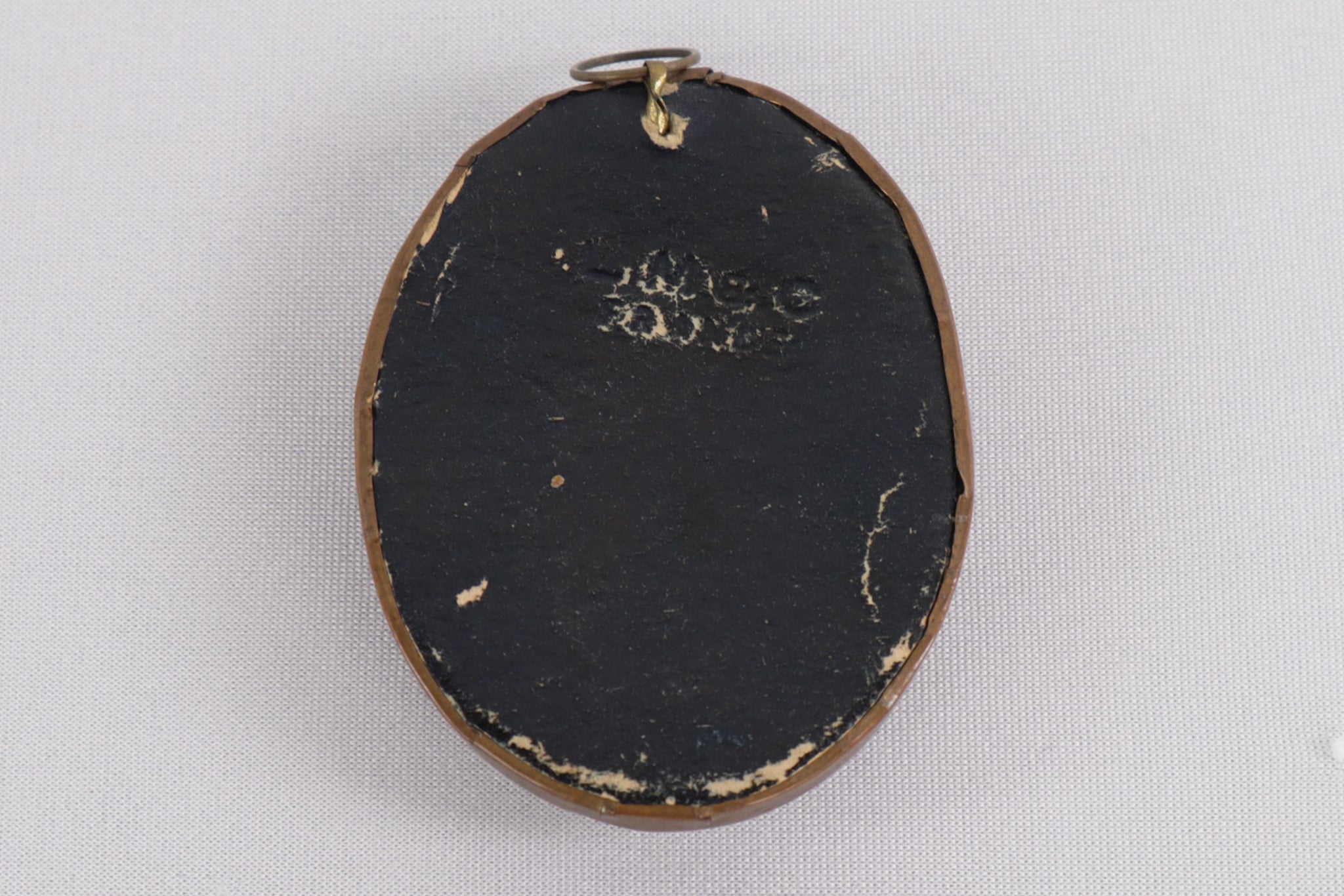 Oval frame with glass cover and top loop for hanging or wearing