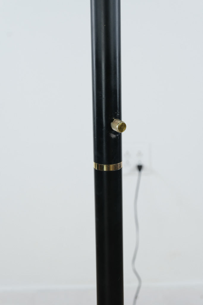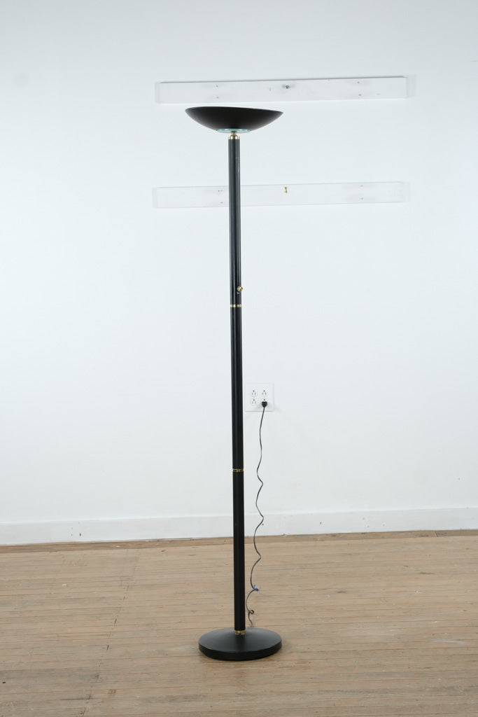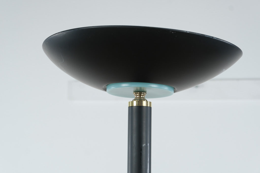 Vintage black metal torchiere floor lamp with brass accents