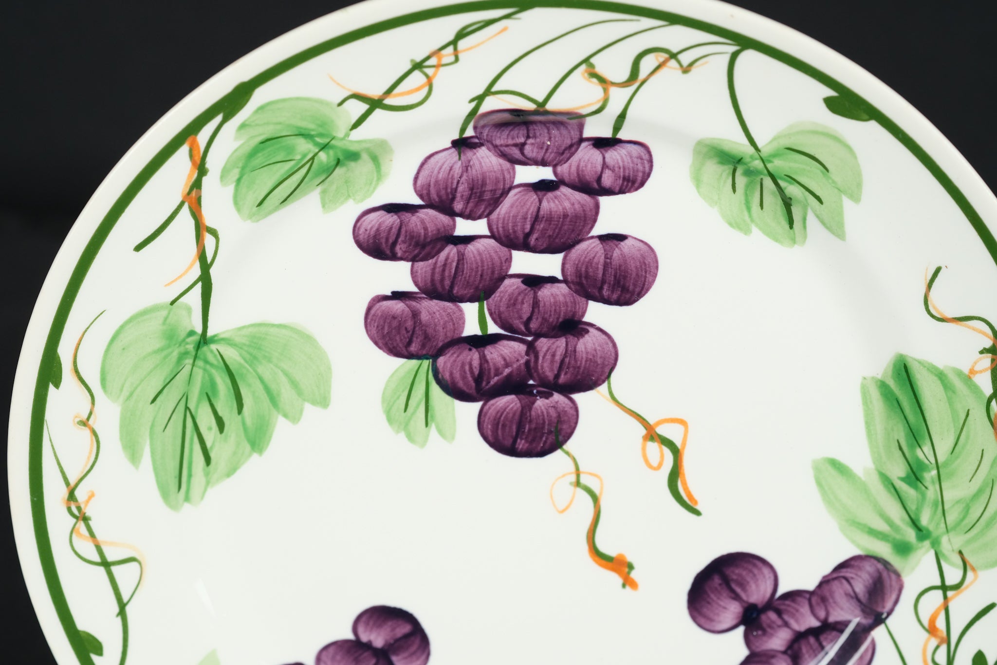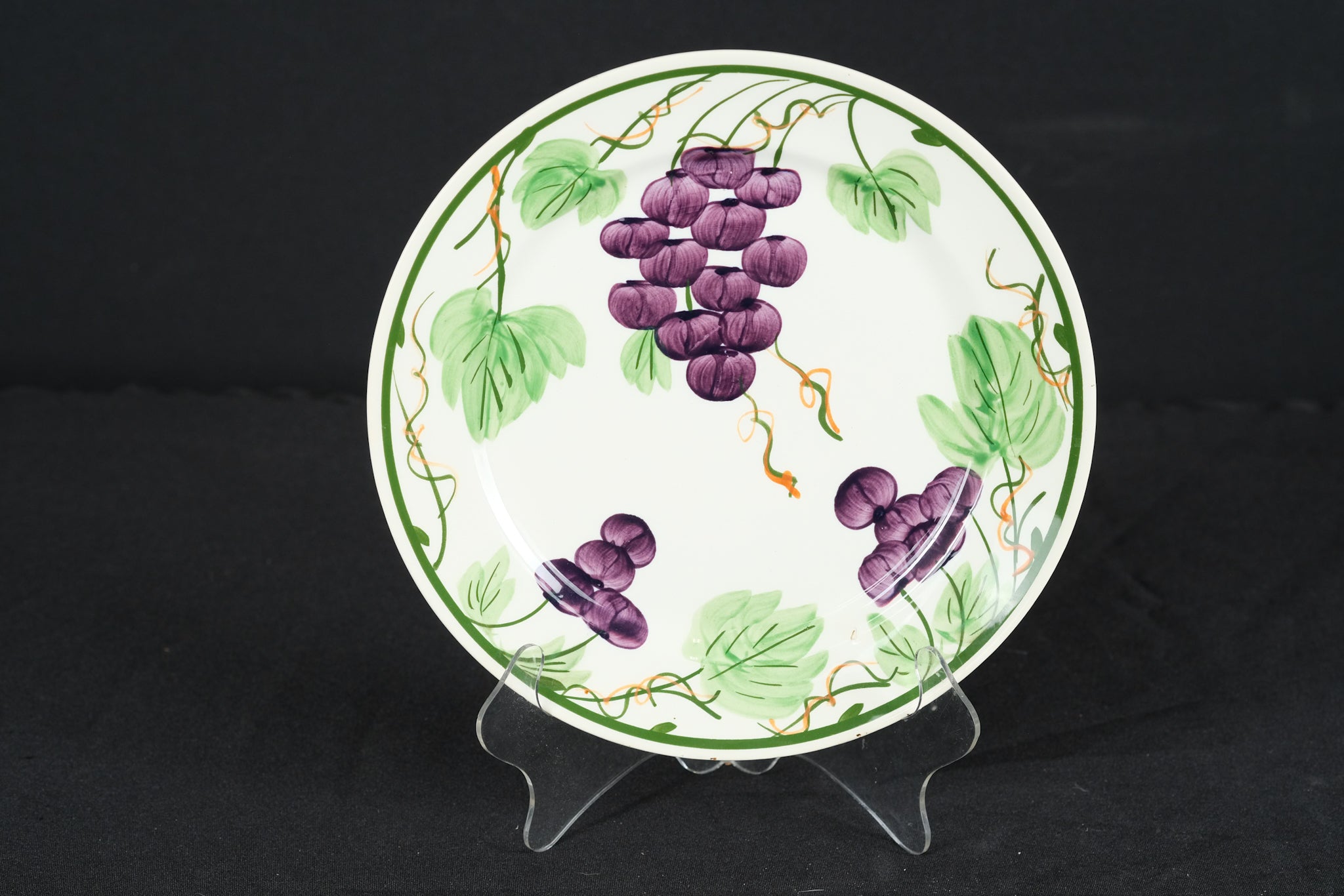 Pattern: Hand-painted purple grape clusters with green leaves and vines.