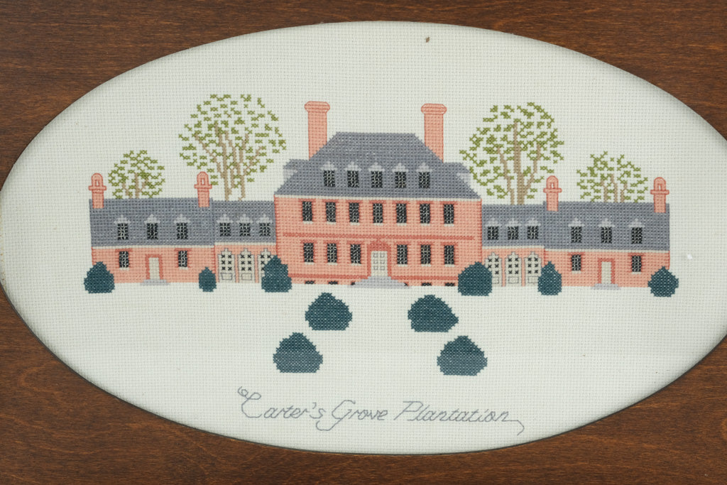 Handmade needlepoint featuring Carter’s Grove Plantation