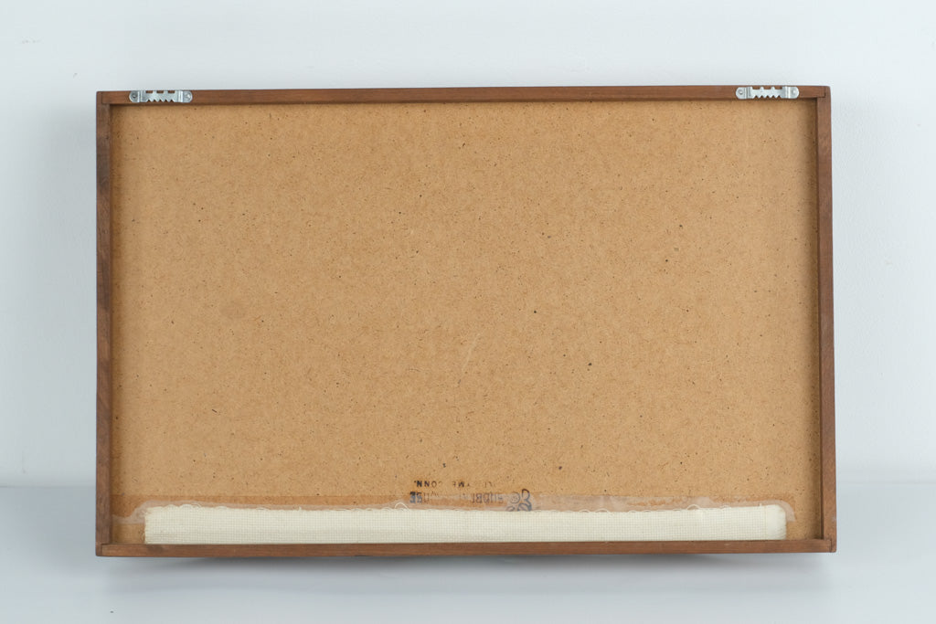 Very Good – Wood frame shows minor wear consistent with age; needlepoint and glass are clean and well-preserved. Fully functional as a tray or wall piece.
