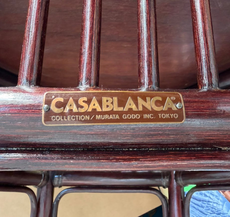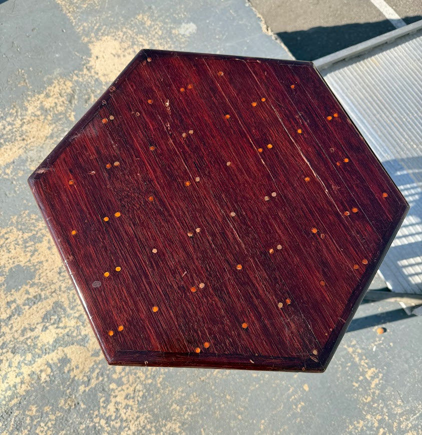 Crafted with a bamboo-inspired frame and a warmly stained hexagonal top, this piece highlights the Casablanca Collectionās signature Japanese design sensibility. Wrapped joints, vertical spindle supports, and a deep, hand-finished sheen showcase an elevated level of craftsmanship and a striking architectural silhouette.