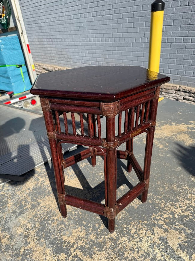 The tableās compact size and geometric top make it a versatile accent pieceāperfect beside a reading chair, layered into a sunroom, or used as a plant stand or entry accent. Its vintage Japanese styling adds warmth, texture, and a collected, worldly character to any space.