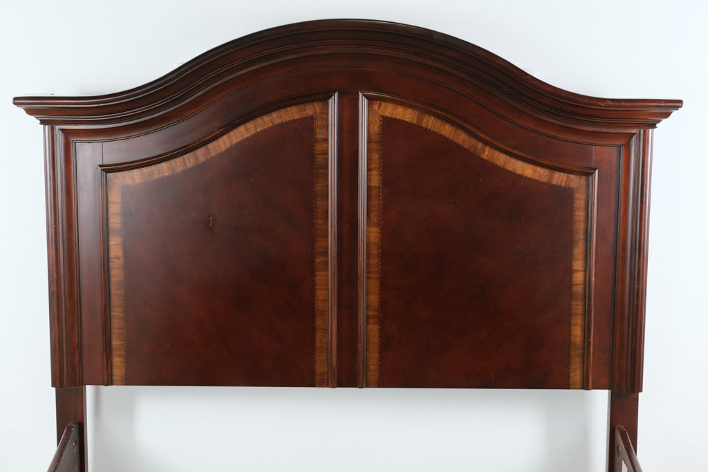 A richly crafted centerpiece, this Cherry Banded Queen Bed embodies timeless elegance and traditional design. Its high arched headboard and gracefully contoured footboard feature striking banded inlay, showcasing the warm tones and natural depth of cherry wood. The result is a stately bed that blends fine craftsmanship with enduring beauty—perfect for a refined, classic bedroom setting.