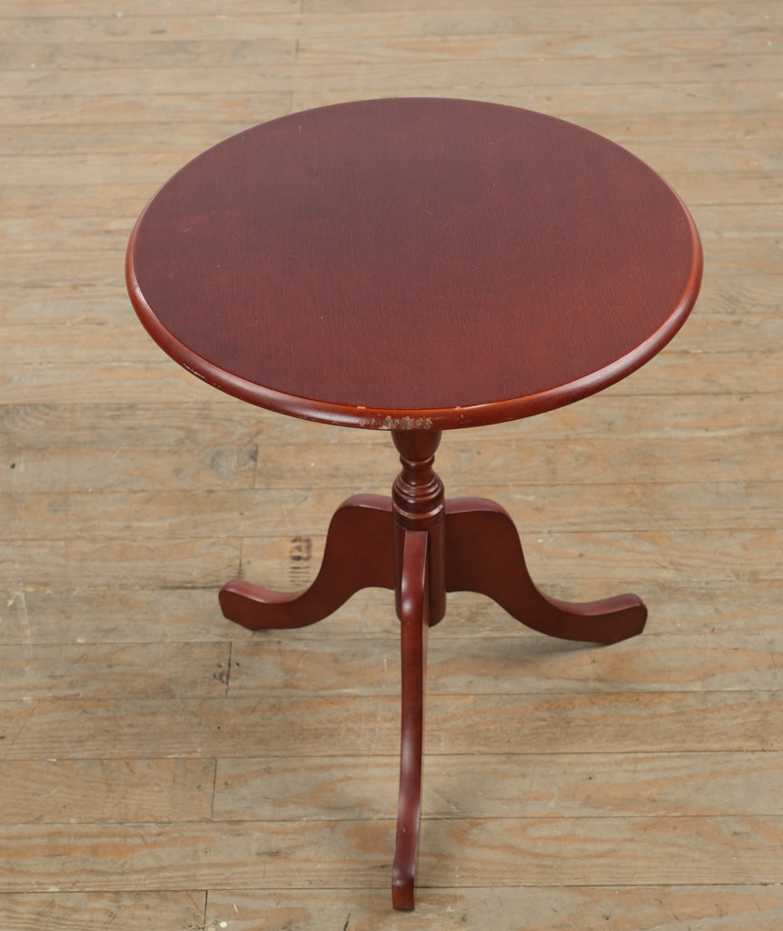 This classic pedestal side table brings timeless charm and warmth to any setting with its rich cherry-toned finish and graceful silhouette. Designed to blend effortlessly with traditional or transitional interiors, it offers a polished surface ideal for displaying décor, a lamp, or your favorite reading materials.