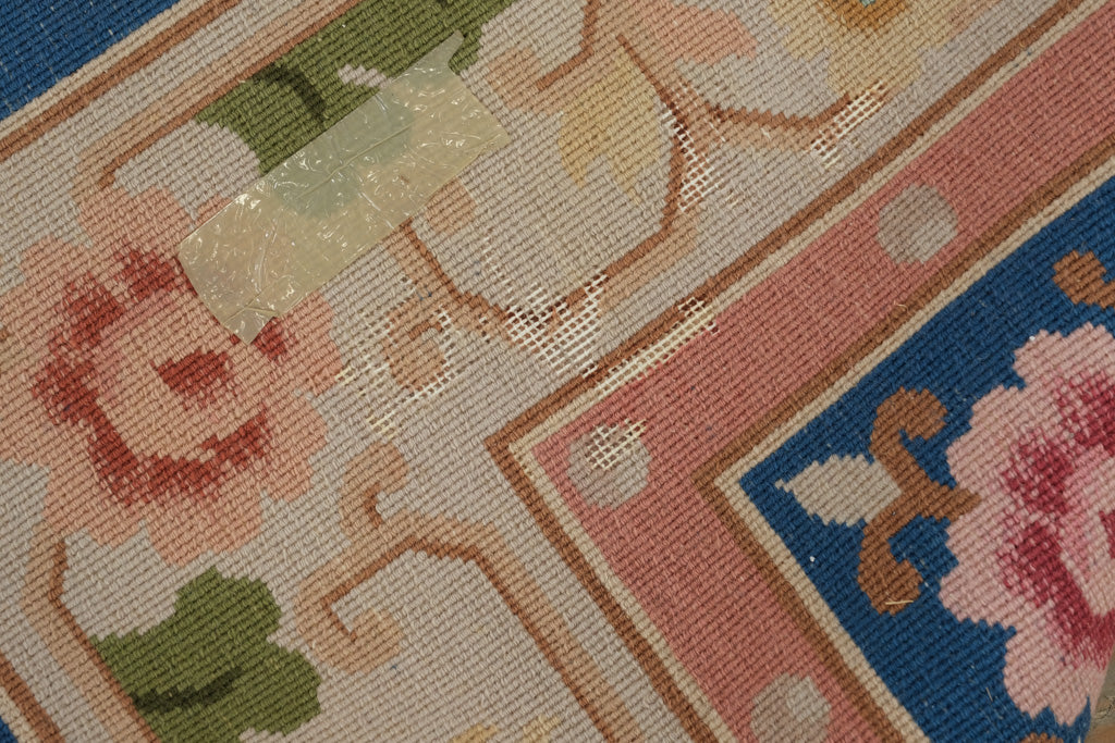 Chinese Wool Floral Area Rug - Blue and Blush - Blossom Motif
