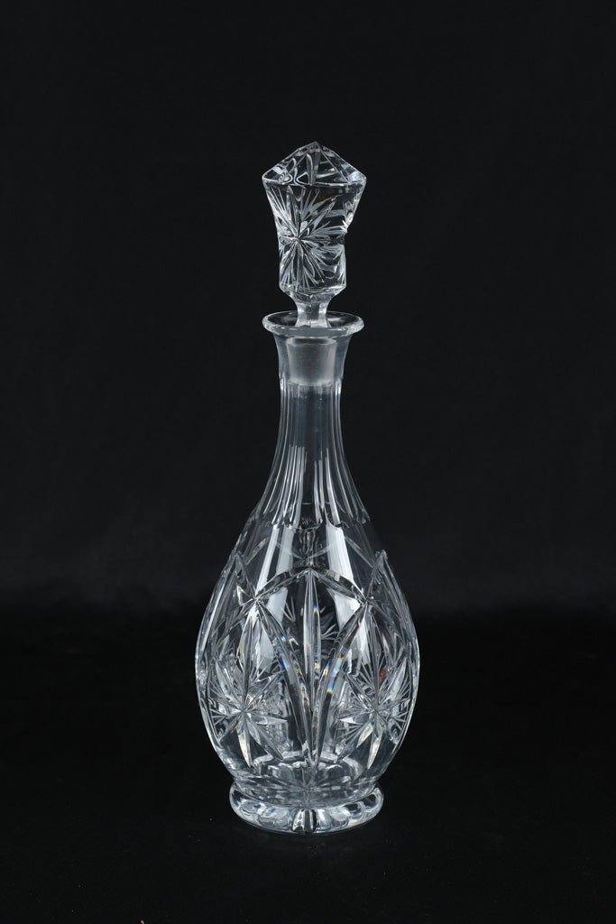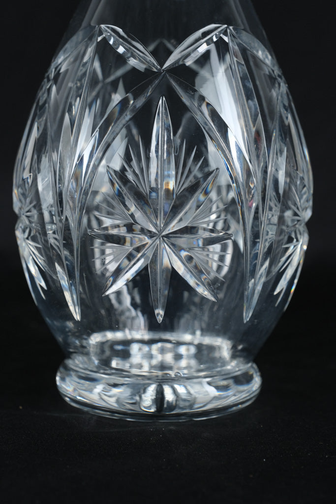 Cut Lead Crystal Decanter 15” Tall Starburst & Fan Cut with Faceted Stopper