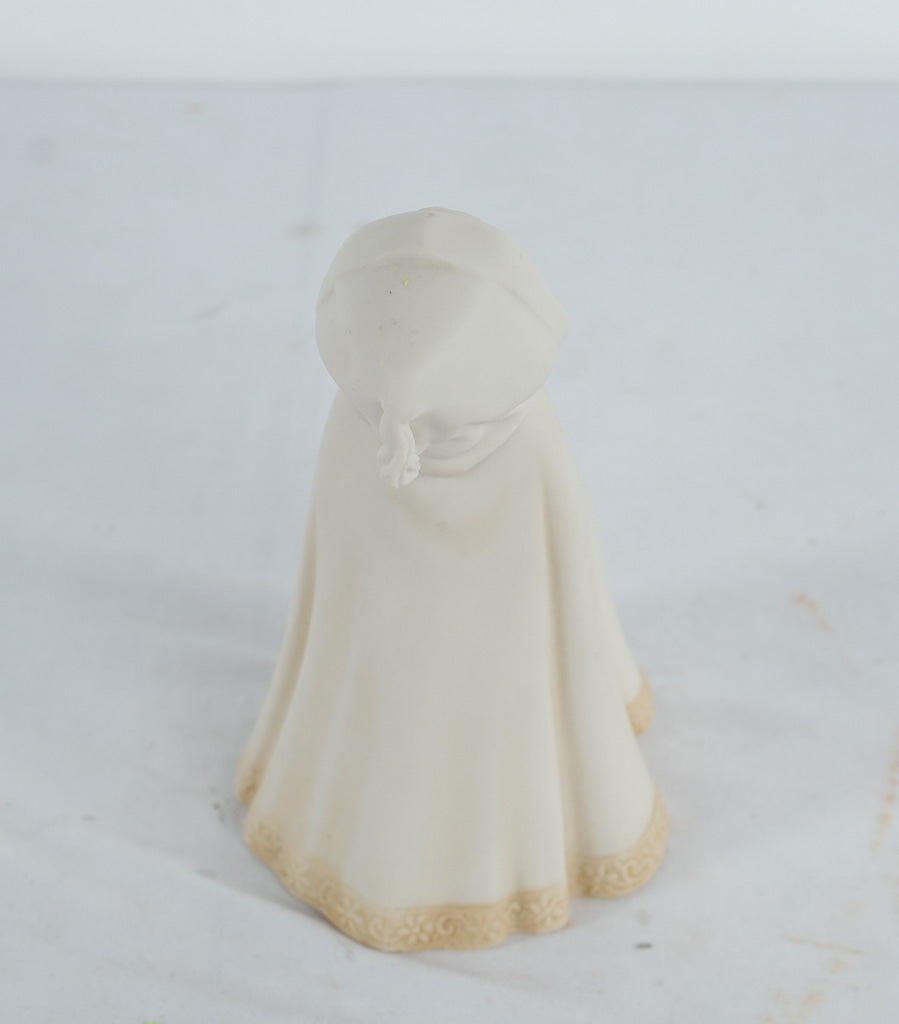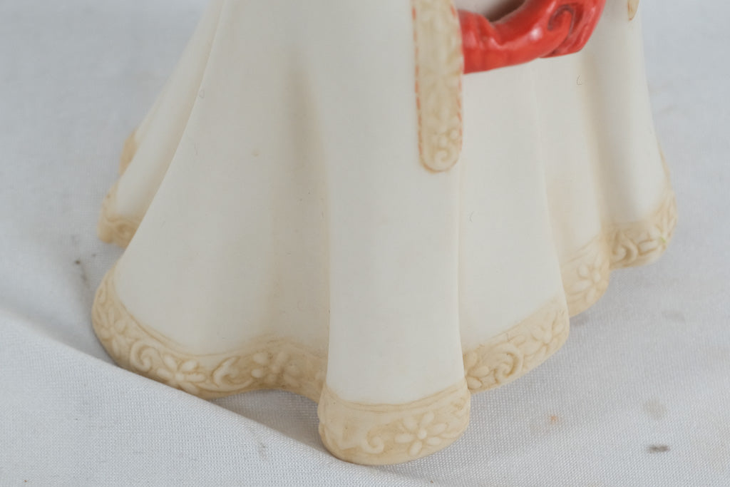 This exquisite Cybis porcelain figurine depicts Little Red Riding Hood in a flowing ivory cloak with a vivid scarlet hood and gloves. Handcrafted in fine bisque porcelain and delicately hand-painted, this collectible showcases the artistry and refinement for which Cybis Studio is renowned. The figure’s serene expression and sculptural grace make it a timeless addition to any collection of fine American porcelain art.