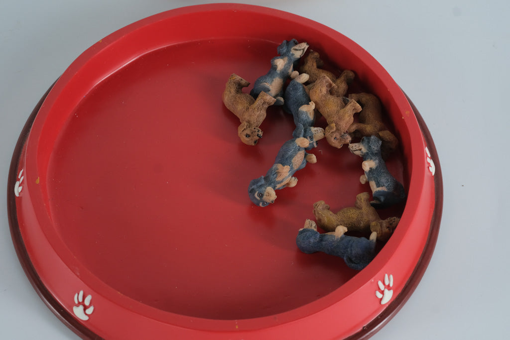 The game includes nine sculpted Dachshund playing pieces—half in tan and half in gray—each finely detailed and full of personality. The round base opens to reveal a hidden storage compartment, keeping all the Dachshund figures neatly stored when not in use. Perfect for dog lovers, Dachshund owners, and collectors who enjoy playful, decorative pieces.