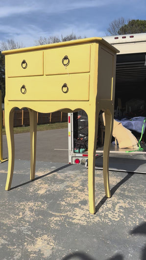 A beautifully crafted Somerset Bay accent table finished in a warm, buttery yellow, this tall and graceful piece blends coastal charm with timeless elegance. Its elongated, curved legs and classic ring-pull hardware give it a refined silhouette, while the brand’s signature craftsmanship ensures lasting quality and visual appeal.