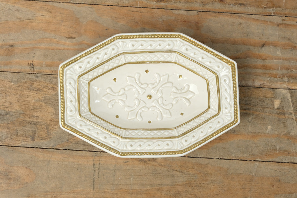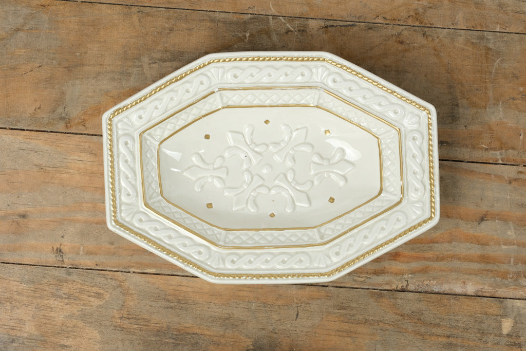 Fitz and Floyd Embossed Gold-Trim Oval Soap Dish Set – Pair of Decorative Trays
