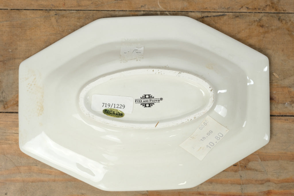 πŸ“ Add a refined accent to your vanity or guest bath with this beautiful set of two Fitz and Floyd embossed oval dishes. Crafted in creamy white porcelain with raised scroll motifs and gold detailing, these versatile pieces function equally well as soap trays, trinket dishes, or small serving plates.