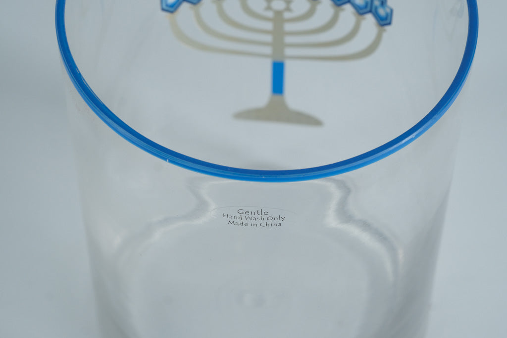 Trimmed in bright blue around the rim, it’s perfect for displaying pillar or LED candles, creating a warm and reflective ambiance for Hanukkah gatherings. A tasteful, modern piece that blends traditional symbolism with contemporary style.