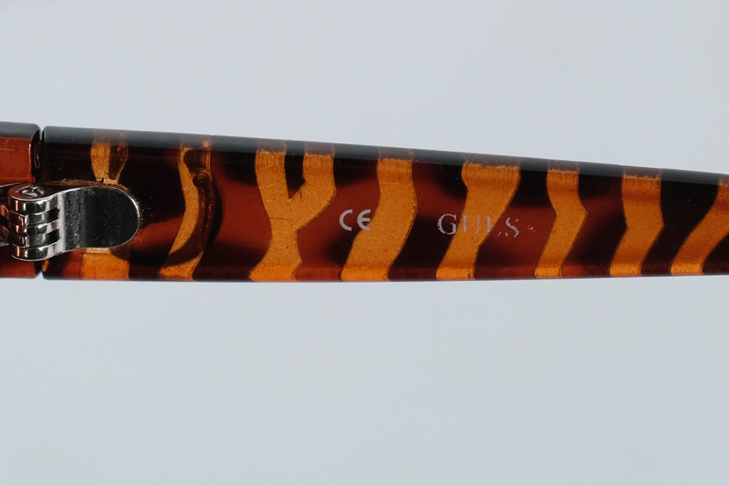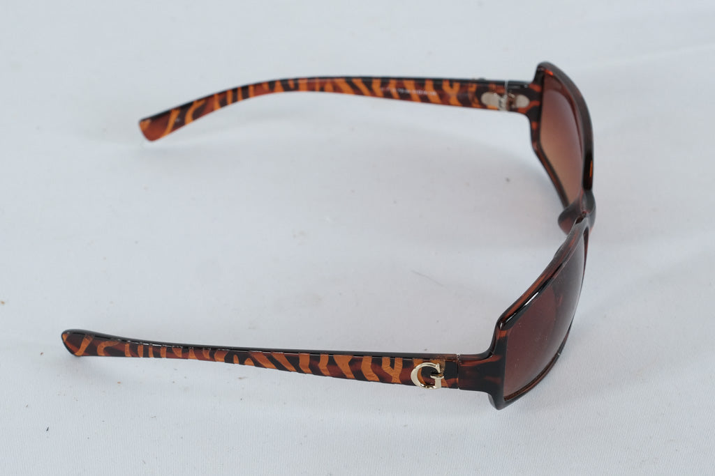 Add a touch of bold sophistication to your look with these GUESS GU 115/S women’s sunglasses. Featuring a tortoise tiger stripe frame with a gold-tone “G” logo at the temples, these glasses perfectly balance classic and trendy style. The brown gradient lenses provide UV protection while enhancing your everyday outfits with effortless designer flair.