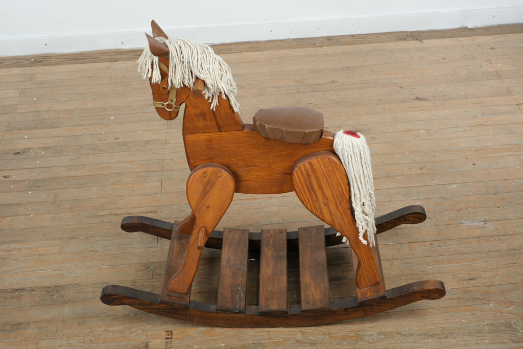 Both decorative and functional, this piece is ideal for children’s playrooms, nurseries, or as a nostalgic accent in home décor. At over three feet tall, it’s substantial yet perfectly balanced for smooth, steady rocking.