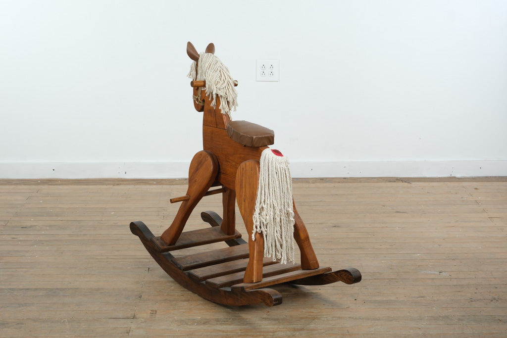 Features yarn mane and tail, leather-style seat, and gentle curved runners
