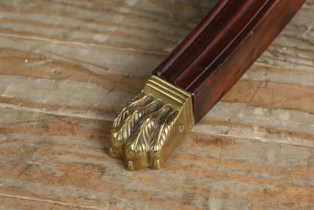 Crafted in solid mahogany, the Henkel Harris table features exceptional grain clarity, a refined satin sheen, and precise banded inlay work that underscores the brandâs reputation for master-level woodworking. Its double pedestal base stands on graceful sweeping legs capped with brass claw feetâboth decorative and structurally robust.